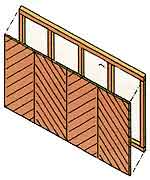 При обшивке по любой схеме панельные доски закрепляют с помощью скоб. Маленькие треугольники, без которых не обойтись при обшивке "елочкой", прибивают к каркасу гвоздями с потайной головкой.