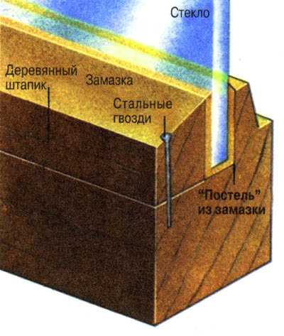 Нередко наряду с замазкой применяют деревянные штапики. После замены оконного стекла прежние штапики можно прибить